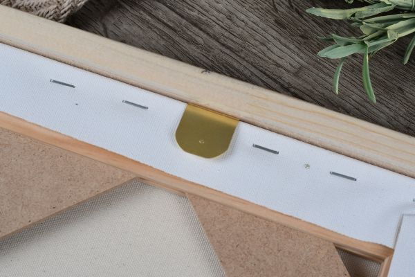 Messinglasche zur Befestigung von Keilrahmen in Bilderrahmen