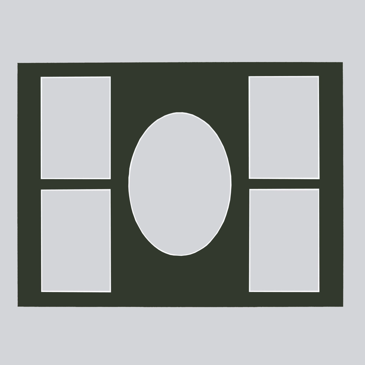 Die Passepartoutcollage Vivienne hat ein Außenmaß von 30x40 cm und einen Ausschnitt für ein Bild im Format 13x18 cm sowie vier Ausschnitte, die für Bilder im Format 9x13 cm geeignet sind. Die Collage kann sowohl im Quer- als auf im Hochformat verwendet werden.