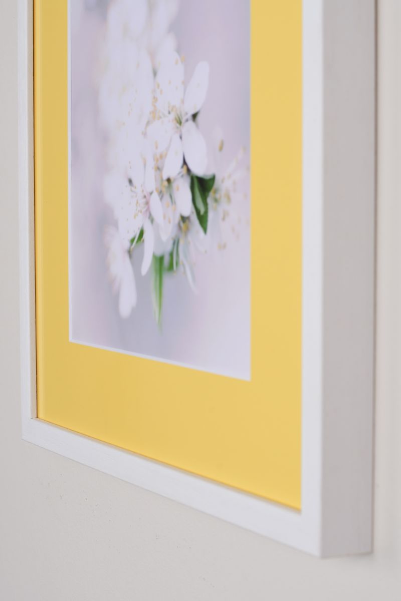 - Kombiniere Passepartouts immer mit Normal- oder Museumsglas. Wir raten davon ab, beim Verwenden eines Passepartouts den Bilderrahmen mit Antireflex- oder Kunstglas zu bestücken, da durch den Abstand zwischen Bild und Glas das Bild optisch an Schärfe verliert.